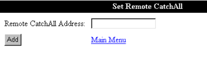 當你想刪除該設定,可以Click pic.21 中的 "Set no default catch all account"來清除所有關於錯誤郵件的設定。另外,如果用戶希望將錯誤傳送的郵件送到非本domain的電郵戶口中,可以click pic.21 中的 "Set remote catch all account" 進入pic.22中的畫面。
